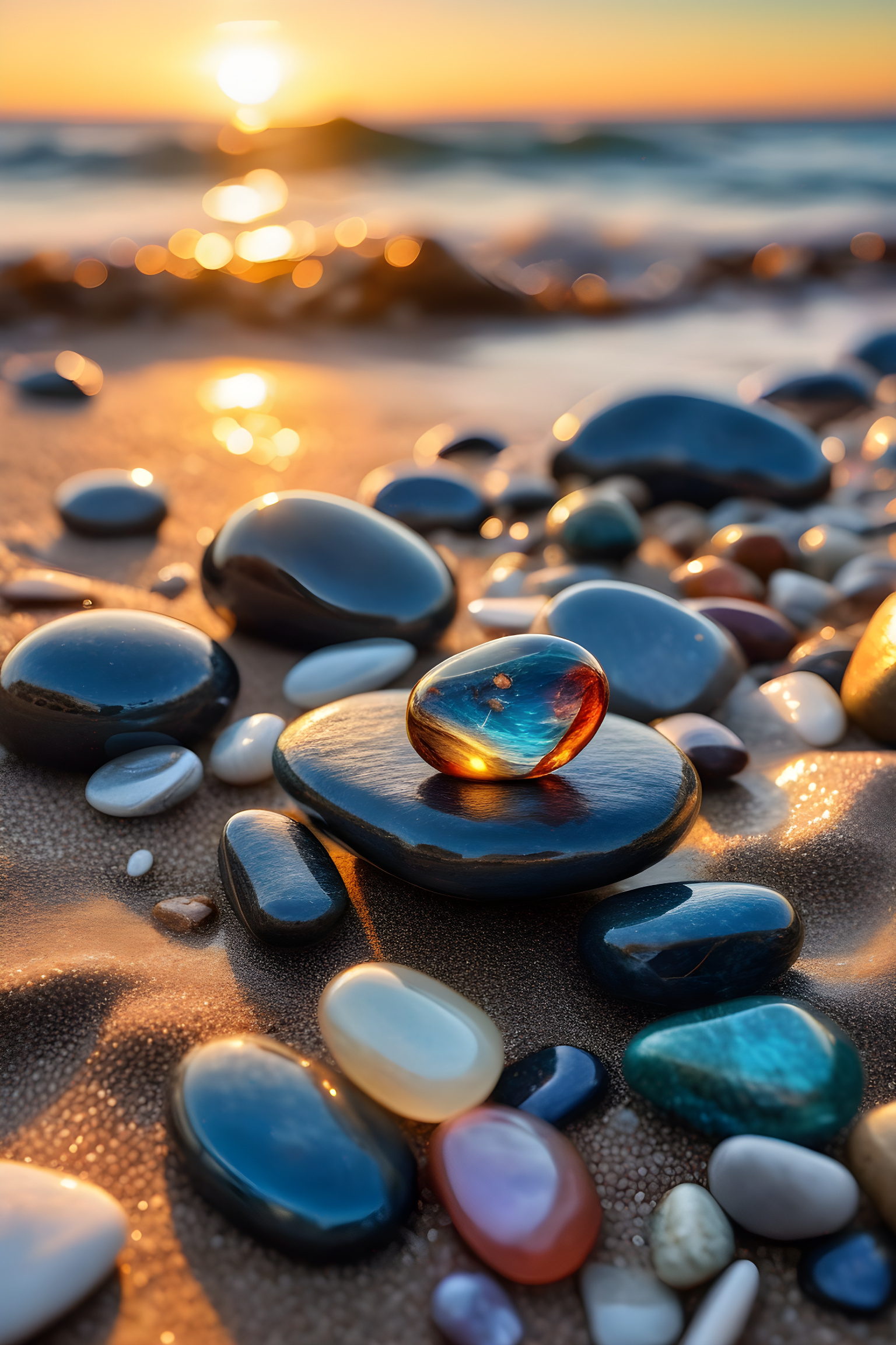 a close up of a stones on a beach