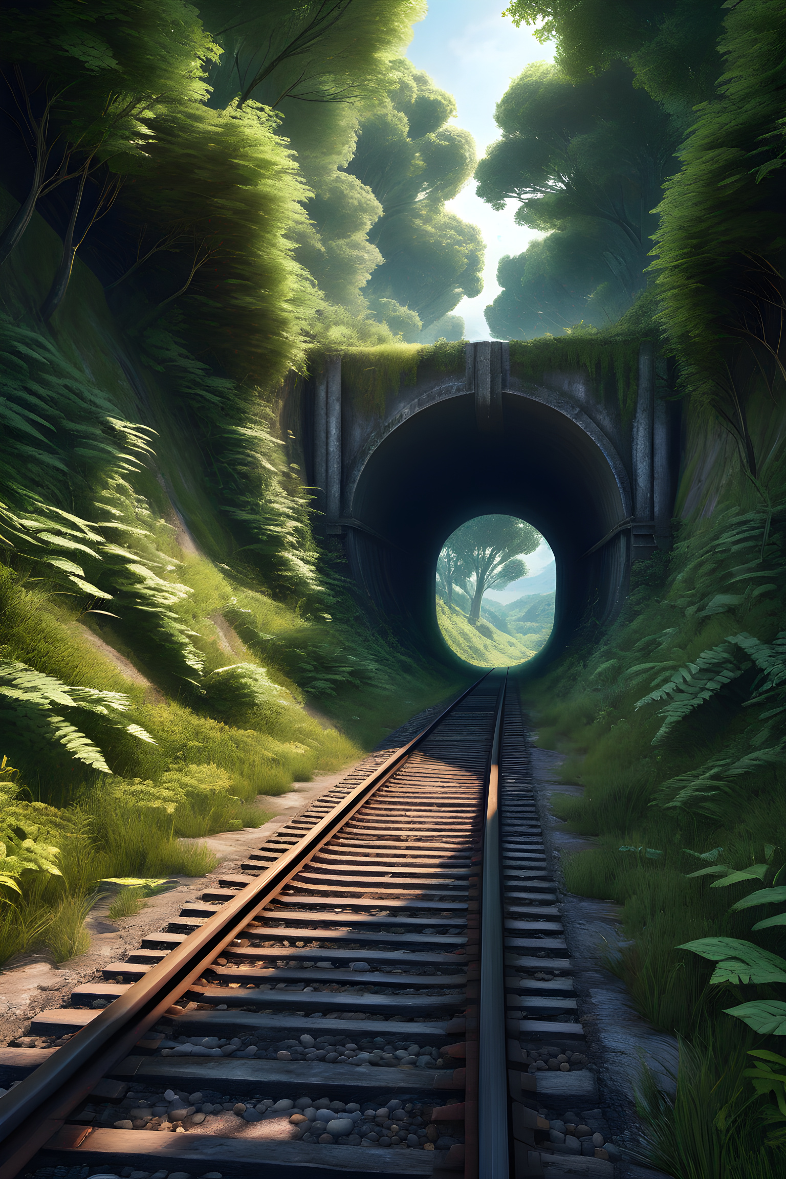 a train track going through a tunnel